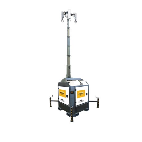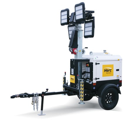 Herc Rentals engine driven LED light towers are fuel efficient and are designed to increase safety on dimly lit job sites. These towable LED light towers, available for rent, are essential equipment for crews working to meet deadlines under low-light conditions.. Vertical Mast Towable LED Light Tower.