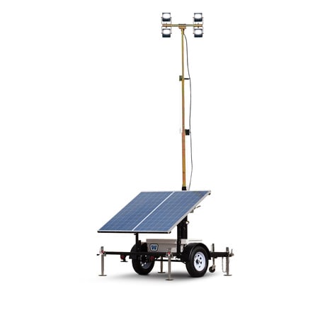Rent a 640W Solar Towable LED Light Tower. Save on fuel and electricity costs with solar light towers. These light towers feature 20-foot masts, run-silent operation and include outriggers for enhanced stability.